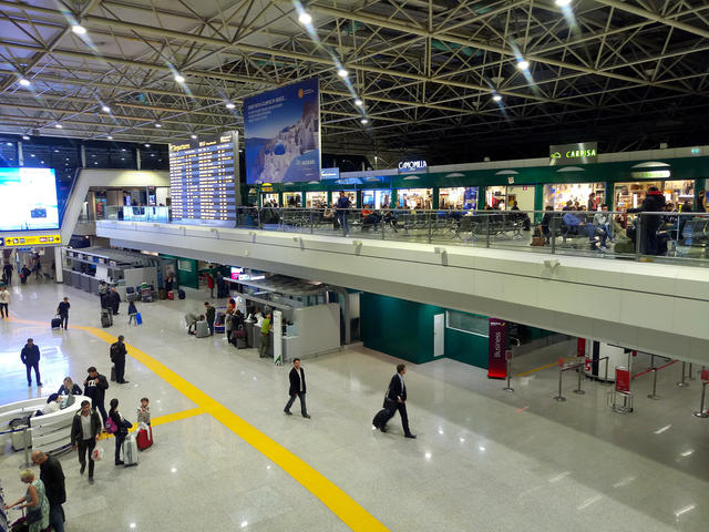 ↑ こちらは出発ターミナル2(T2)です。大きく見えますが、このターミナルには何とカフェが4軒しかありません。パスポートコントロール前の、搭乗券がなくても誰でも入れる部分です。こちらのターミナルは訪れるお客さんが少なく、カフェも空いていて、逆に落ち着けそうではあります。