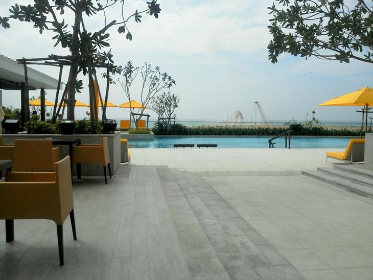ただ、プールから臨む中国開発中の埋め立て作業も微妙な・・・