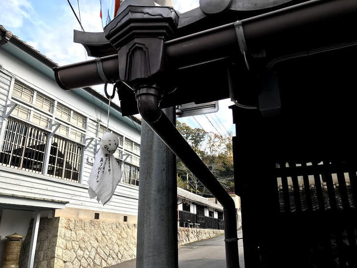 (軒先のてるてる坊主越しに見える〔大正館〕と〔旧登り窯〕の方を前編:お店の方から目指します。)