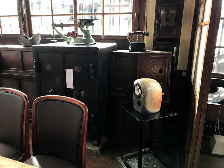 (金庫も長谷陶工場の事務所だった当時のままです。室内は大正ロマンを感じます。)