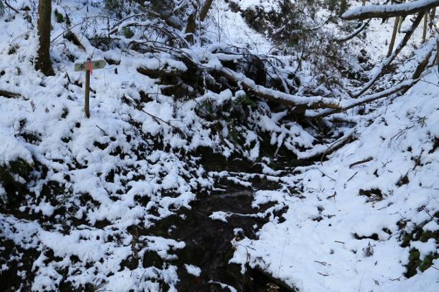 水場を過ぎて直ぐの地点は、ルート上で最も傾斜のあるポイントとなります。