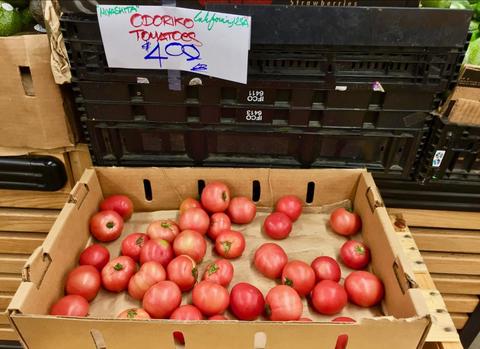 バークレーボウル入り口には、野菜・果物がお風呂くらいの大きさの段ボール箱に入って売られていて、取り出すのに体を箱の中に入っちゃいそうなくらい腰を曲げなきゃいけない事もある。