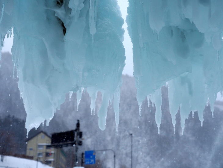 氷瀑まつりの準備で、水の凍結に苦労しているなどということは、