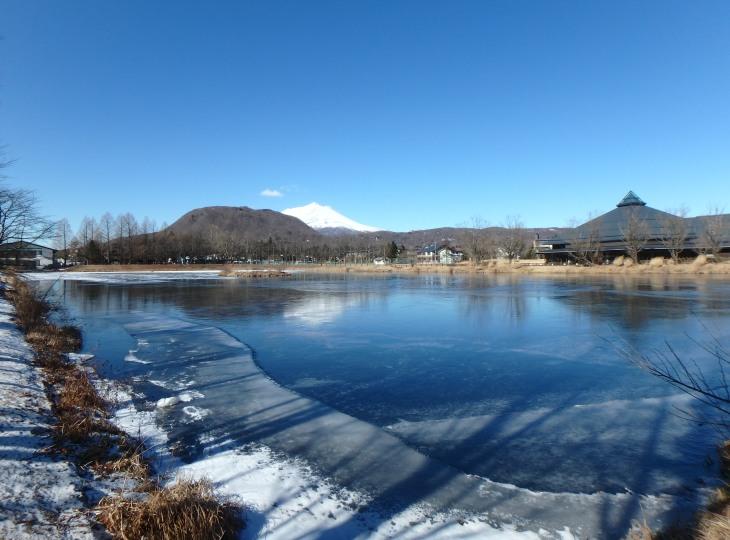公園内の池は一部凍ってますが全面結氷まではいきません