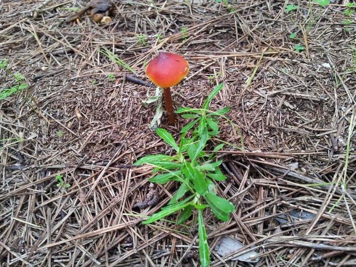 食べられるきのこは普通なかなか見つかりませんが、きのこが苔の間から出てきたりしているのを見ると気持ちが和らぎます。