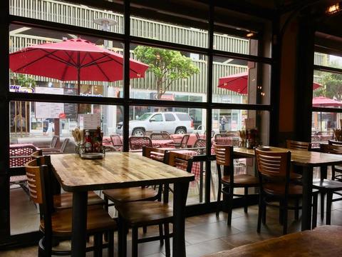 パティオが人気でハッピーアワーはいつも賑やかな 『ロウズ・フィッシュ・シャック(Lou's Fish Shack)』 もこの日は雨に完敗。 待ち合わせの為のランチに寄った。
