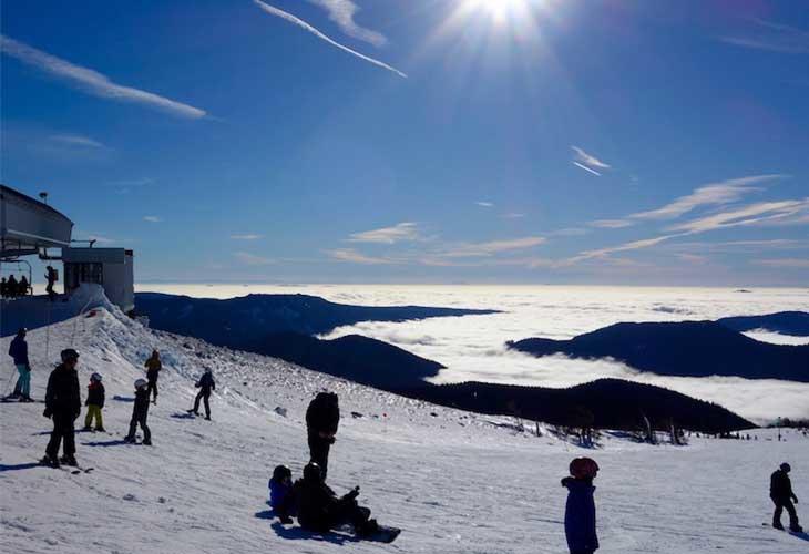フッド山には、「ティンバーライン」、「サミット・スキーエリア」、「スキーボール」、「クーパー・スプール」など、5つのスキー場がありますが、その中で一番大きいのが、今年、50周年を迎えた「メドウズ」 。14のグリーン、38のブルー、23のブラック、それに10のダブルブラックコースがあり、初心者から上級者まで楽しめます。