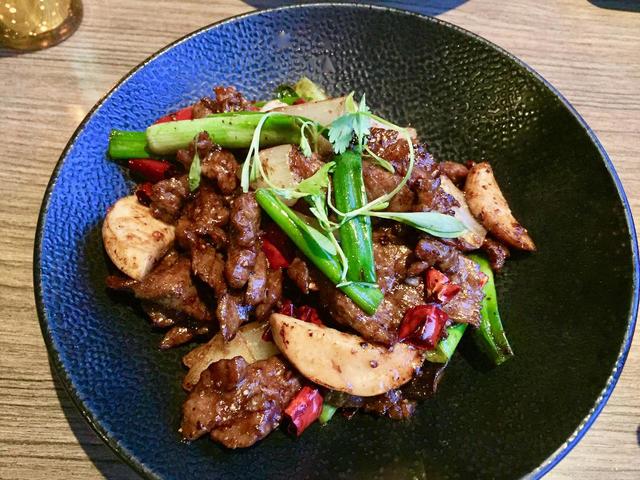 中華じゃ肉の種類は分かるけど部位を明記してるのは珍しい "サーロイン" って書いてある 『アンガスサーロイン炒め(Black Pepper Sliced Angus Beef Sirloin)』 スライスしたオイスターマッシュルームにお肉に旨味は染み込んでいた。