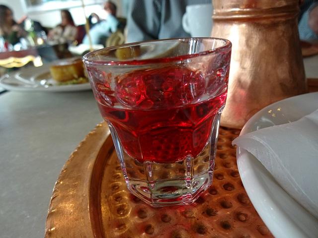 このお店では小さなショットグラスに入ったローズ・リキュールも、コーヒーのお供として付いてきました。甘くて薔薇の良い香りがするリキュール、ちょっと嬉しいオマケ。