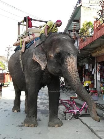 車や人と一緒に、象も普通に通りを歩いている光景は圧巻。民家の横に象小屋があり、まるで車庫に車が止まっているかの如く、象が飼われている光景も見られます。