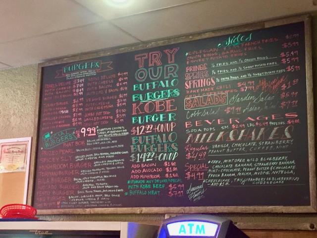 壁に大きくメニューがあって、それでレジで頼んで席に座って待っている。 10人くらいしか座れないので混んでる時は相席覚悟だ。 デラックス(Pearl's Deluxe)とミニ・デラックス(Mini Deluxe)があり、よほどの大食漢じゃなければミニで十分かも。 新鮮なトマト、レタス、オニオンが入ってるし、チーズ・ベーコンを加えるか聞いてきた。