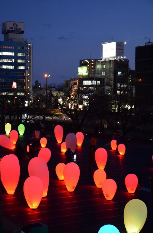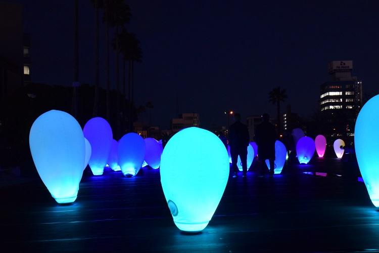 こんにちは、徳島特派員のかおりです。先日の記事に引き続き、とくしまLED・デジタルアートフェスティバルのご報告です。今回は、新町川エリアに行って来ました。こちらのシンボルアートは、藍場浜公園にある「自立しつつも、呼応する生命」です。点灯前の様子です。17:50ぐらいですが、まだ明るいです。この日は天気がよく、風もなくて比較的暖かい日でした。