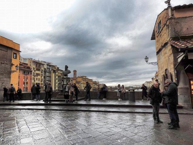 ↑ アルノ川に架かる世界でも最も有名な橋の一つ、ヴェッキオ橋の上からです。楽しそうに写真を撮る日本人の女の子達がいました。