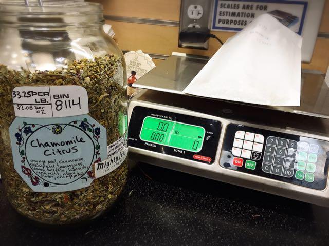 量り売り商品はまず、使う容器の重さをスケールで測って容器に記入し、その中に欲しい分だけの商品を加えるシンプルな方式。ちなみに、自分で容器を持参すると「バッグクレジット」として5ー10セントを支払いの際に値引きしてくれる特典も付いています。