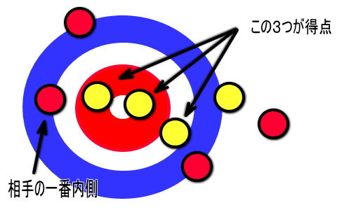 カーリングでは交互にストーン(漬物石みたいなやつ)を8投、氷上を滑らし得点を競います