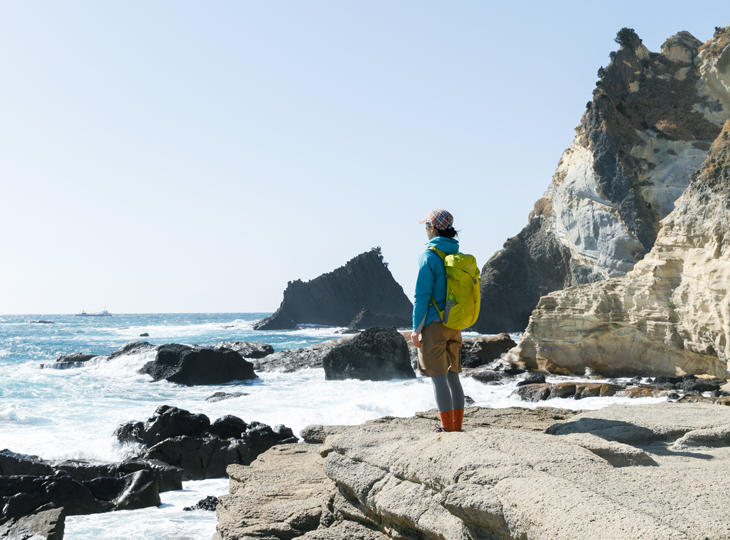 今回ご紹介した写真の人が写っている風景は2月末に撮影しました。南伊豆の冬はこのような風景です。是非とも秋から冬の南伊豆でトレッキングを楽しんで下さい。