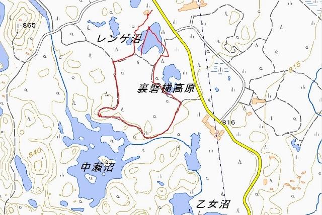レンゲ沼の中央に続くトレースを辿り、時計回りに巡ります。