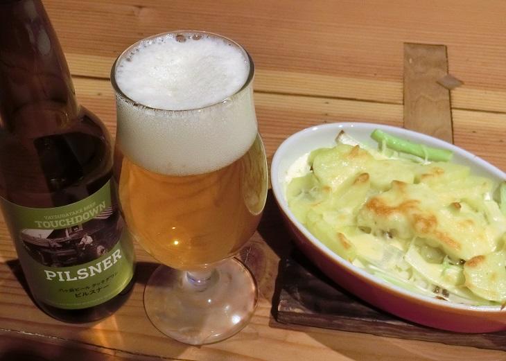 麦芽と米とコーンスターチ、ホップを使った清里ラガー。ピルスナーよりは濃い金色です。だけどピルスナーより軽くてすっきりしてる。『タッチダウン』のなかでいちばん軽いんですね。味わいは、なんともフルーティー!