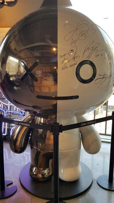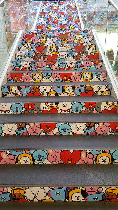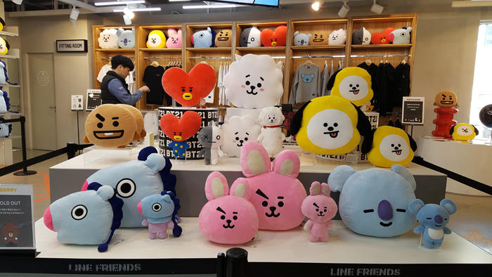ラインフレンズ梨泰院店の2階にあがると、防弾少年団がデザインした