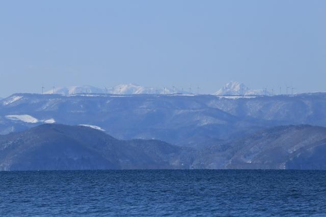 布引高原の風車のバックには、三本槍岳と旭岳の姿も確認できました。