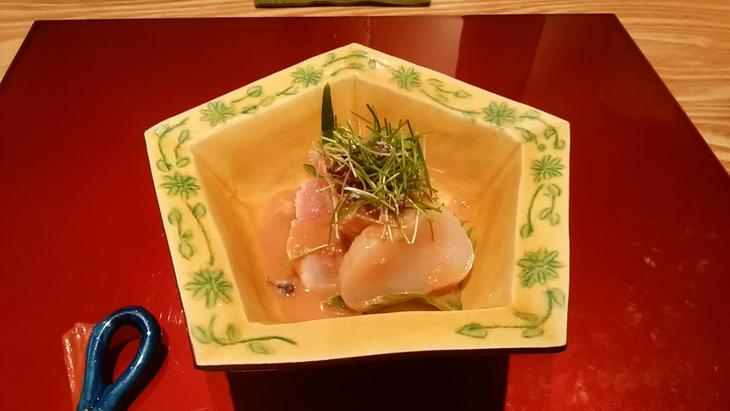 ●鮪とホタテのお造りです。程良い脂の乗り具合に心地よさを感じます。