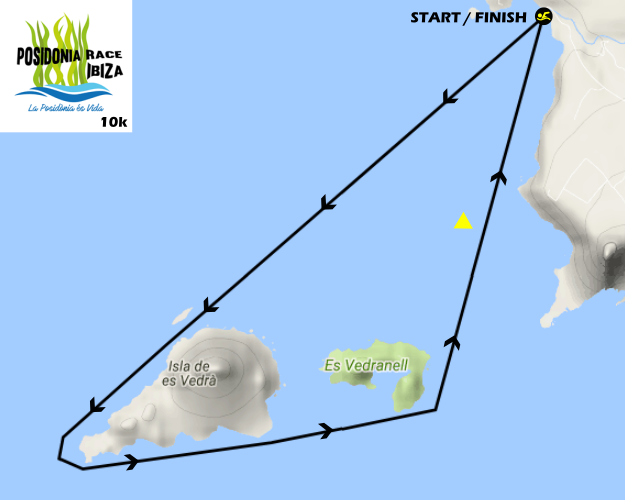 Cala d'Hort からエス・ベドラ島を周って戻ってくる10Kmコースと、手前で戻って来る5Km コースと。