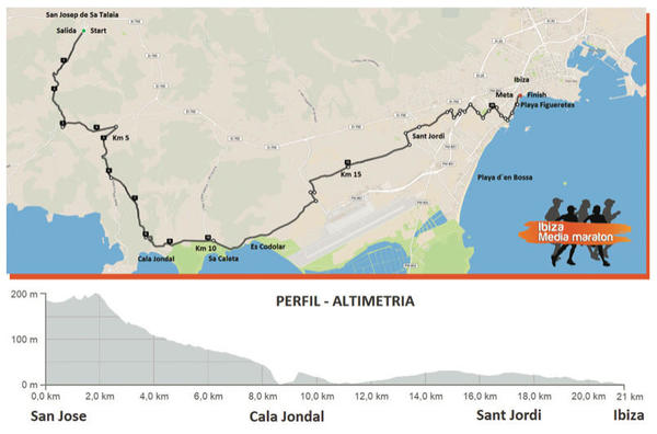 こちらはハーフマラソンとその半分の距離。走る場所もイビサ市から西側へ向かいます。