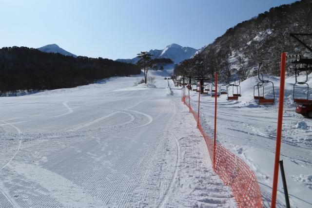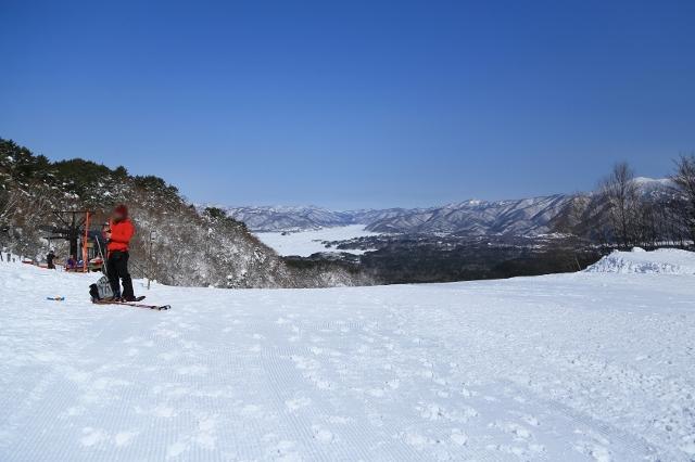 第2ロマンスリフトを下り、ゲレンデトップから桧原湖方向を望みます。