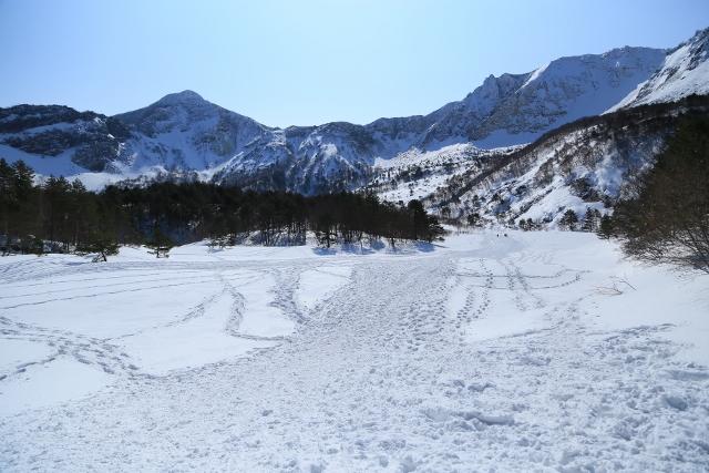 目指す目的地は、写真正面に見える櫛ヶ峰の麓にあります。