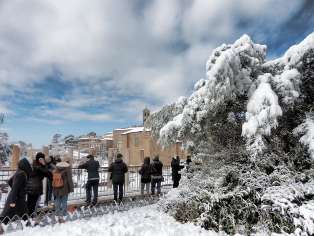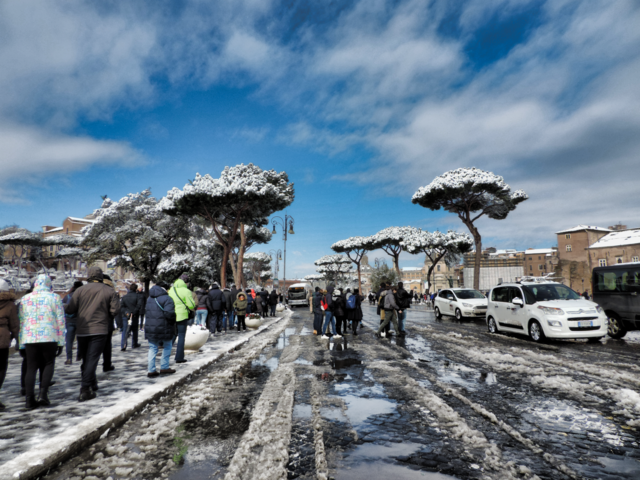 今回のブリアンは、ローマ中心部で3センチ、北ローマで10センチの積雪の予報が出されていました。雪に慣れていない為、首都ではこの程度の降雪でも交通機関が簡単にマヒしてしまいます。この為、昨日26日は、ローマの学校は幼稚園から大学まで強制的に休校となりました。それでは、一緒にローマの雪の模様を見てみましょう!