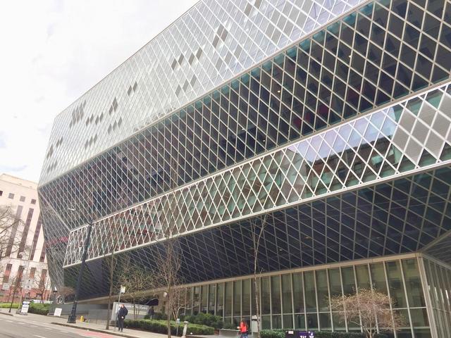 シアトルのホテルの前について先ずびっくりしたのが、噂には聞いていたけど、見事に立派な図書館だった。