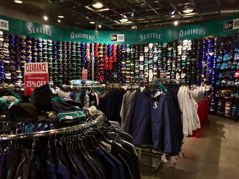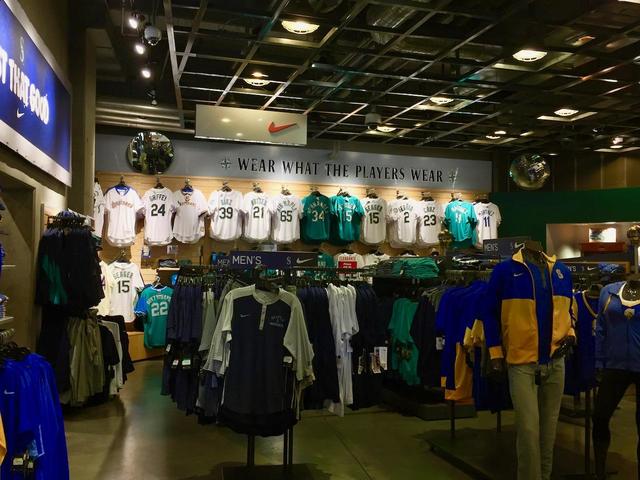 平日の朝11時前、お客さんがいるはずもない。 余計なお世話だったけどお店の方に、これから日本からIchiroを見にやって来るからエス(S)サイズ、エム(M)サイズは欠かさず持っていた方がいいよって言っといた。 何故なら数年前、SFジャイアンツにノリ青木選手が入団した際、日本人のサイズS・Mサイズいつ行っても売り切れで全く手に入らなかった経験があった。
