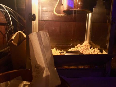 ポップコーンマシンからはいい匂い。 ポンポンいい始めると遠巻きに出来上がりを待つ。 これは無料でもらえるし出来たてホヤホヤ美味し☆