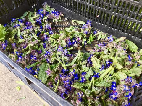 産毛みたいな表面の 『ボリジ(Borage)』 のお花は、ちょっとキュウリっぽい風味がする。 グリーンサラダと和えると見た目も綺麗。