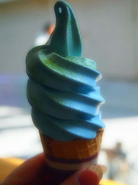 ジーンズをイメージした藍色のソフトクリームです。