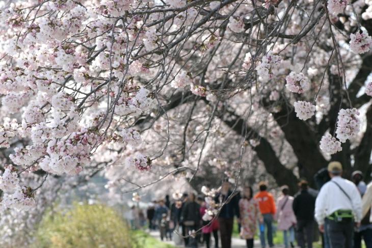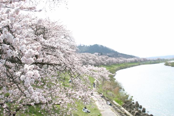 さくら名所百選に選ばれ、約8kmの桜並木が見事です。