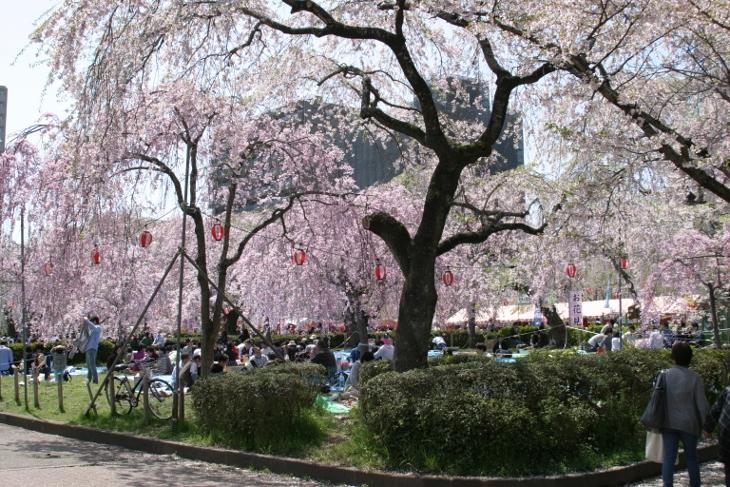 仙台市の榴岡公園は、シダレザクラが美しい公園です。