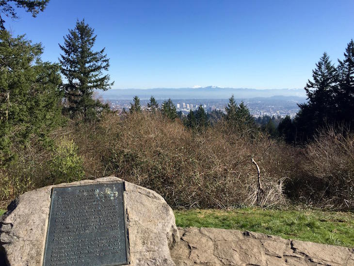 眺望ポイントからは、期待通り、ウィラメット川やカスケード山脈のマウント・フッド(Mt Hood)、マウント・セントヘレンズ(Mt St Helens)、マウント・アダムス(Mt Adams)、マウント・ジェファーソン( Mt Jefferson)、マウント・レーニア(Mt Rainier)を眺めることができました。