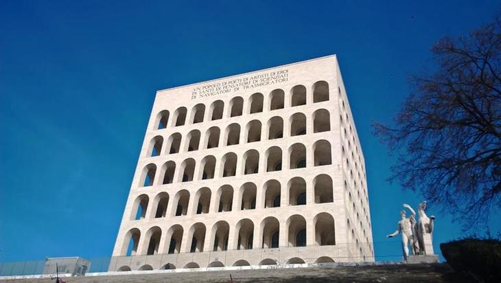 また、「四角いコロッセオ」という異名を持つ「イタリア文明宮殿(伊語:Palazzo della Civiltà Italiana)」も同じくムッソリーニによる都市計画の一環で古代ローマ復興を意識した建築とされていますが、殺風景な印象を受けます。 現在は、2015年にローマ発祥のブランドで知られるFENDI(フェンディ)が未完成だった内部を完成させ、本社オフィスとして使用しています。