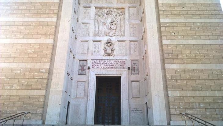 やはり、この地区で特徴的なのはムッソリーニによる都市計画が施されている点にあります。前回の記事でご紹介させて頂いた5大バシリカに数えられるサン・ピエトロ大聖堂とサン・パオロ・フォーリ・レ・ムーラ大聖堂が持つそれぞれの守護聖人を一緒にした教会サン・ピエトロとサン・パオロ教会(伊語:Basilica dei Santi Pietro e Paolo)もその一つとされています。