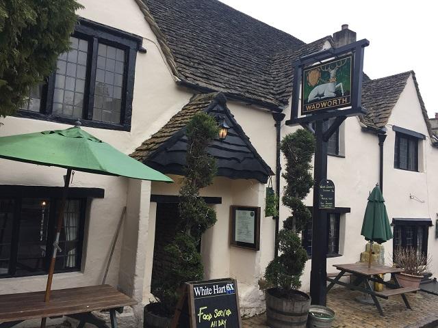 私が身内数人と訪れた日は、こちらのパブ「ホワイト・ハート」で休憩を兼ねてランチにしました。「ワドワース」という看板も見えるのは、同名のビール会社系列のパブだからです。