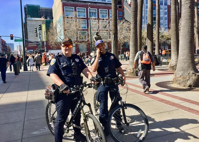 フォルサム&エンバカデロ(Folsom & Embacadero)駅辺りから地上に出るミュ二、前に走っている車両 SFマークにボールパーク(球場Ball Park)行き となって、臨時便も出ていた。 ホーム開幕第一線vsシアトルマリナーズ。