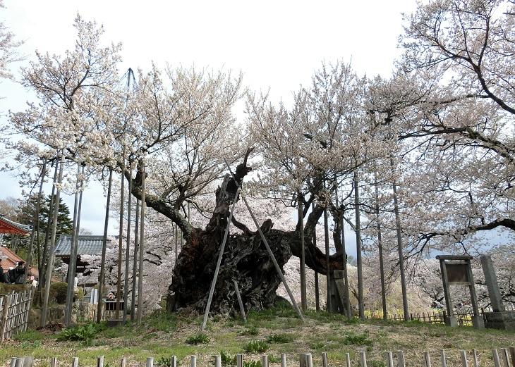 そしてこちらが『山高神代桜』です。樹齢2000年とも言われるエドヒガンの古木で、1922年、桜のなかで初めて国指定天然記念物になったとか。