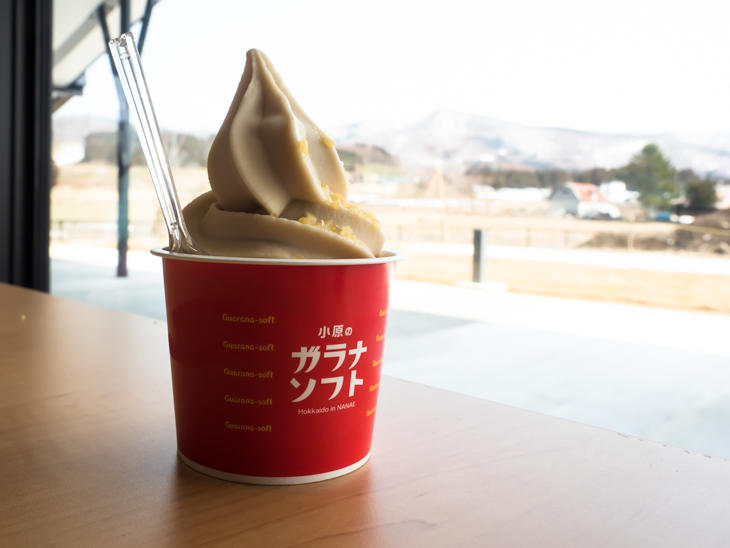 ソフトクリームは、このガラナソフト、ななえの林檎ソフト、ななえの牛乳ソフト(いずれも\350)と