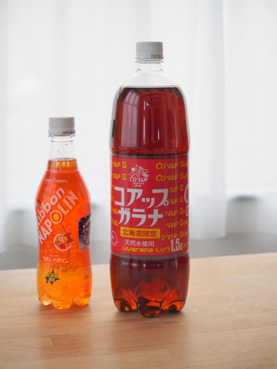 "Ribbon Napolin and Co-up Guarana, which are popular soft drinks in Hokkaido"