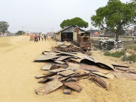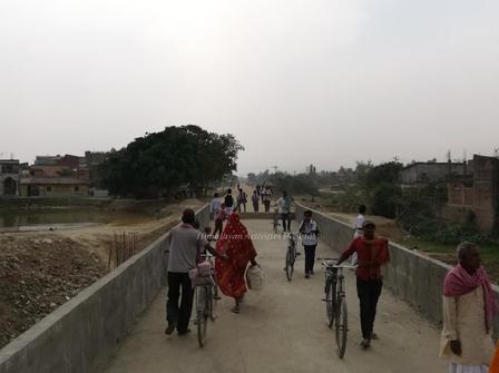 ジャナクプルから先へも線路を延ばす計画のようで、街の外側には盛土が延びていました。線路が敷かれる予定の鉄橋の上を歩く地元の人々。