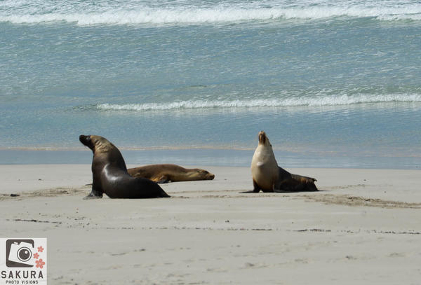 ↓シールベイは野生のアシカ達をすぐそばで見られるホットスポット、ただし公園のスタッフ同行の元でしかこの海岸には降りることができません。海が大きすぎて人がとても小さく見えます。500頭前後アシカがこの海岸に生息しているそうです。↓