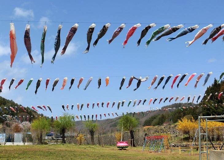山梨県北杜市を走る国道141号沿いの『道の駅南きよさと』では、今たくさんの鯉のぼりが舞っています。
