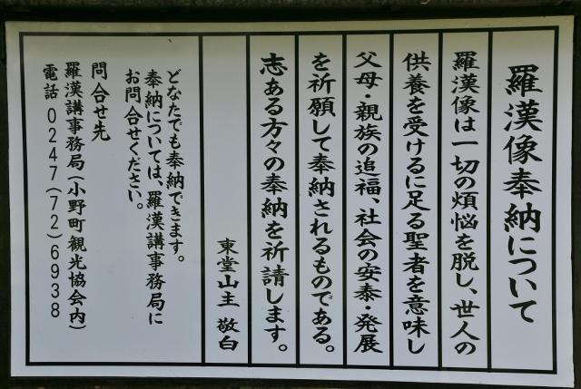 羅漢像奉納についての案内板です。