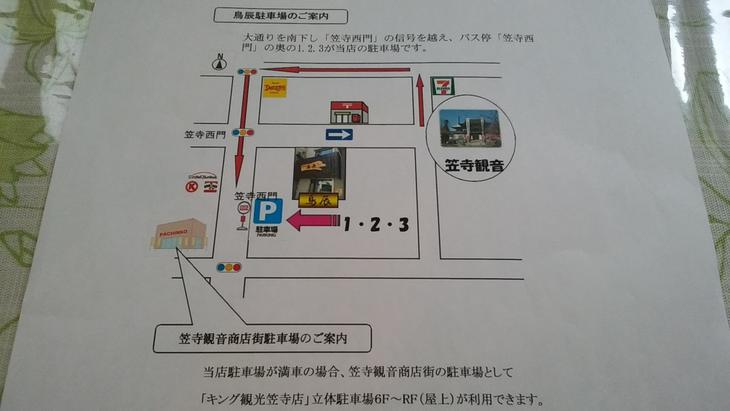 駐車場の場所が非常に分かり辛いので、お店の方にもらった地図を掲載しておきます。